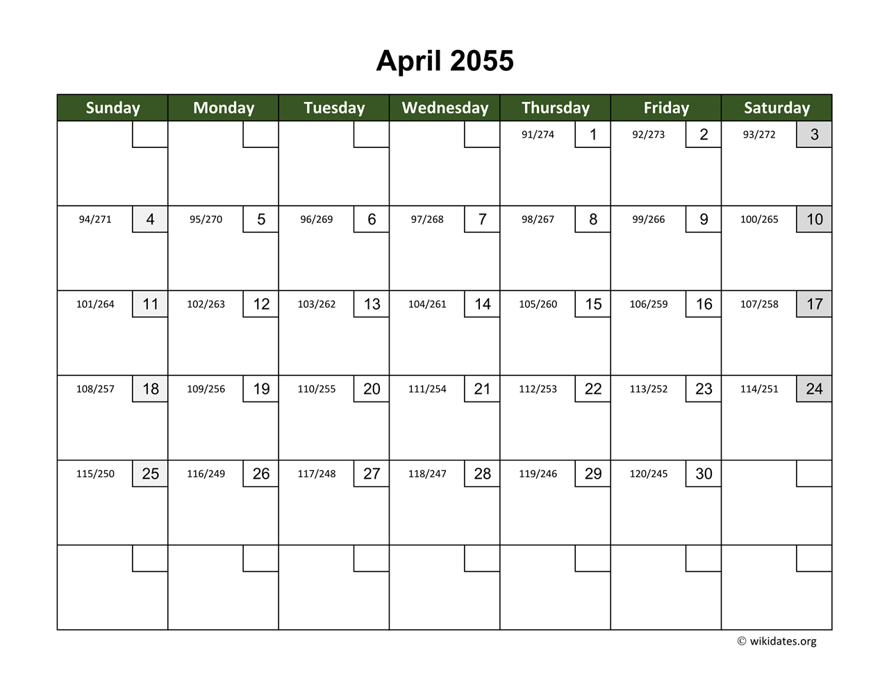 » Next month: May 2055 Calendar with Day Numbers