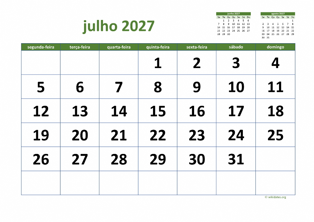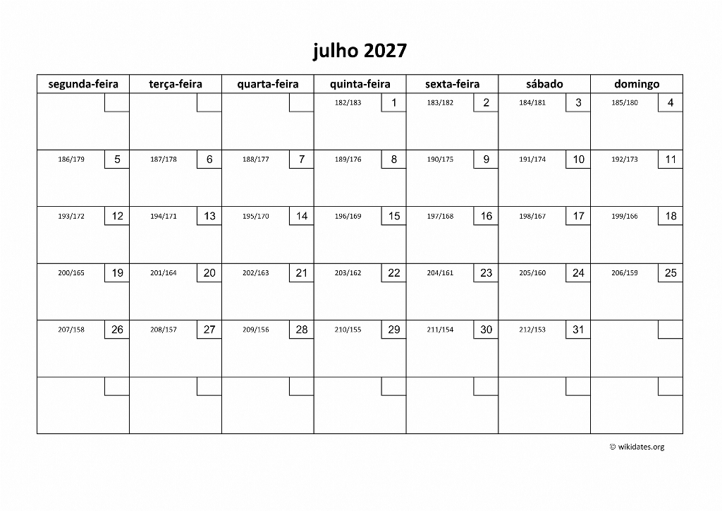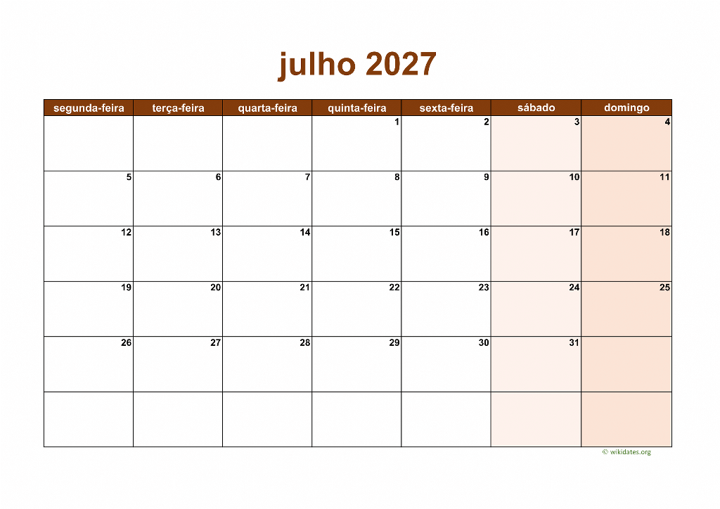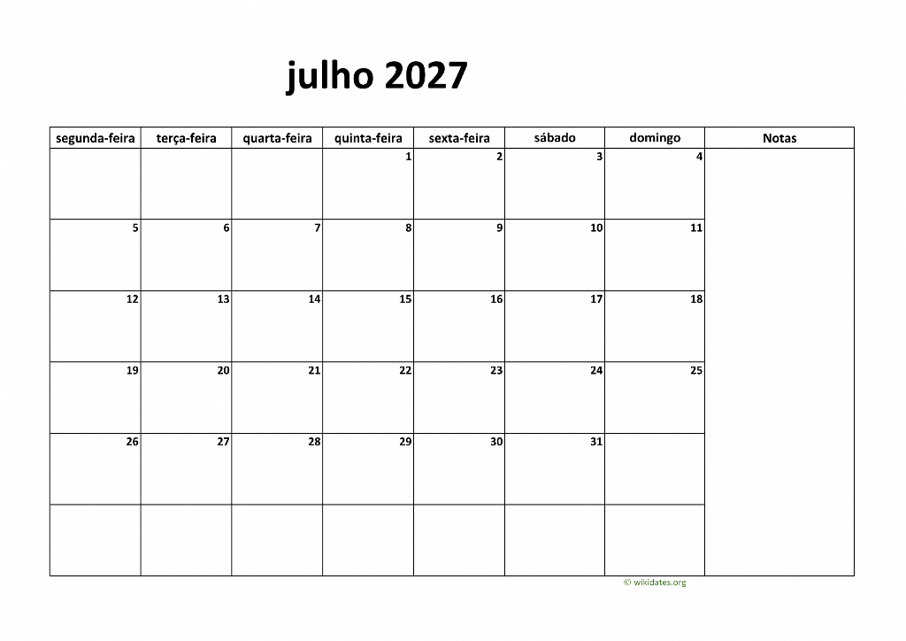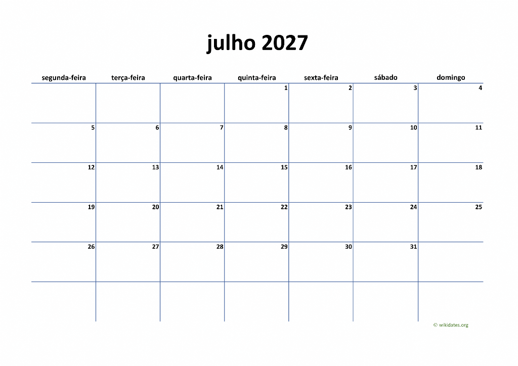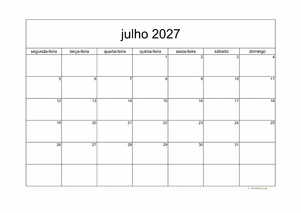 Calendário Julho 2027
