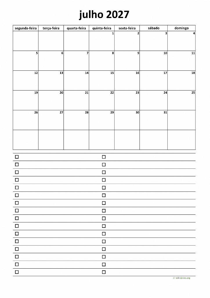 • Vá a esta página para baixar o calendário de 2027 (semana começa na segunda-feira).