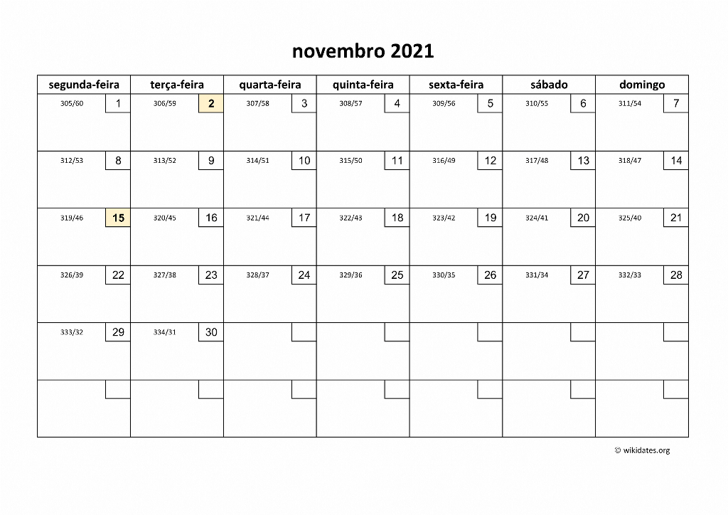 | Calendário Novembro 2021 | |||||||