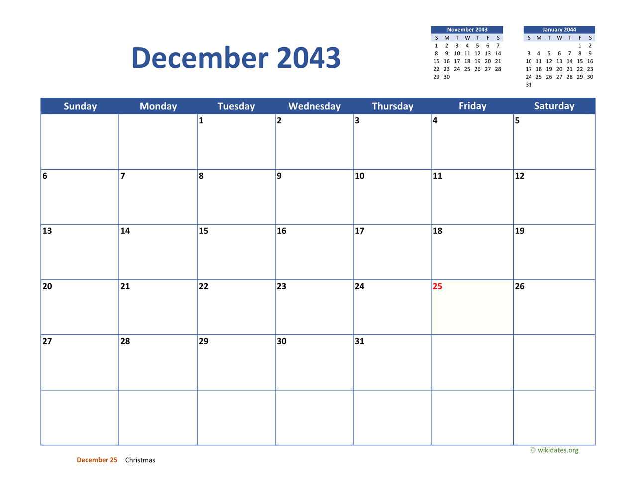 » Previous month: November 2043 Calendar Classic