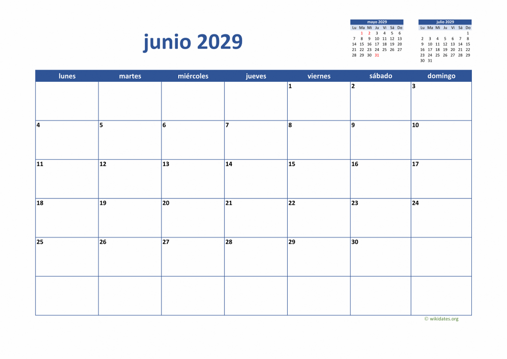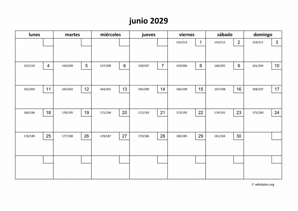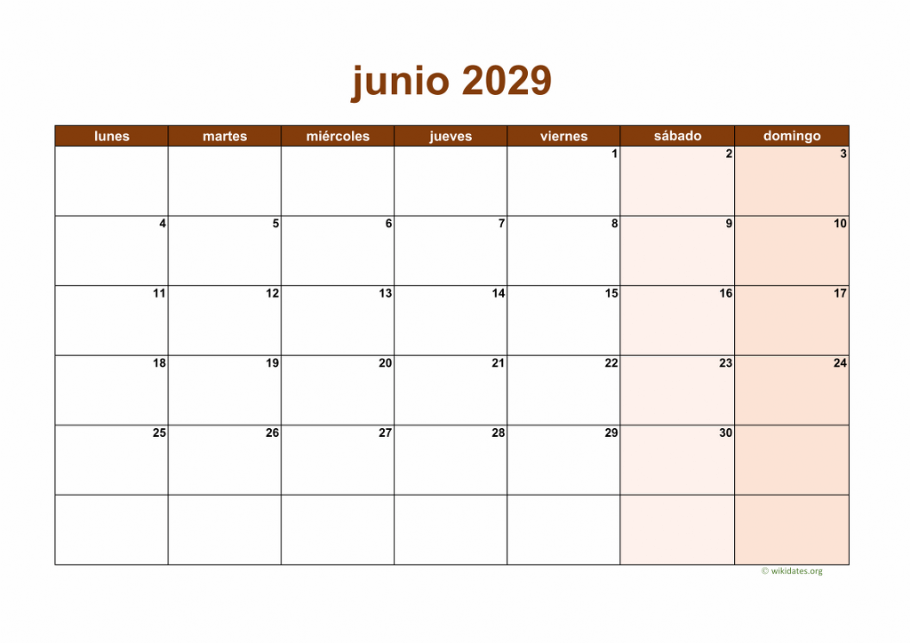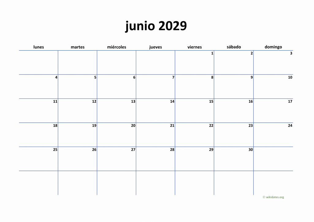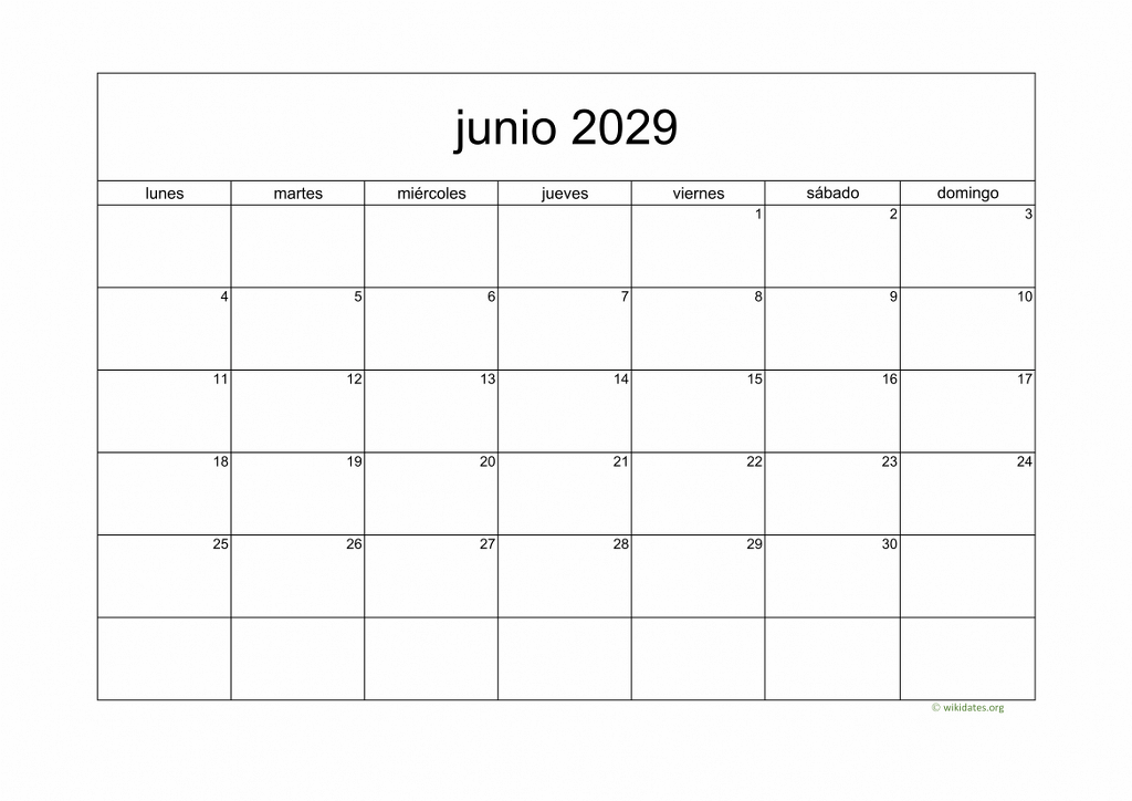 Calendario junio 2029 gratis