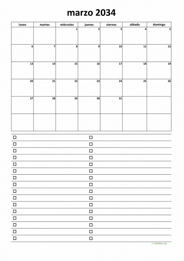 • Todo el calendario de marzo de 2034 plantillas se pueden descargar, editar y gratuito para uso personal no comercial. Previsualizar y descargar todas las plantillas de calendario para imprimir en casa o en el trabajo.