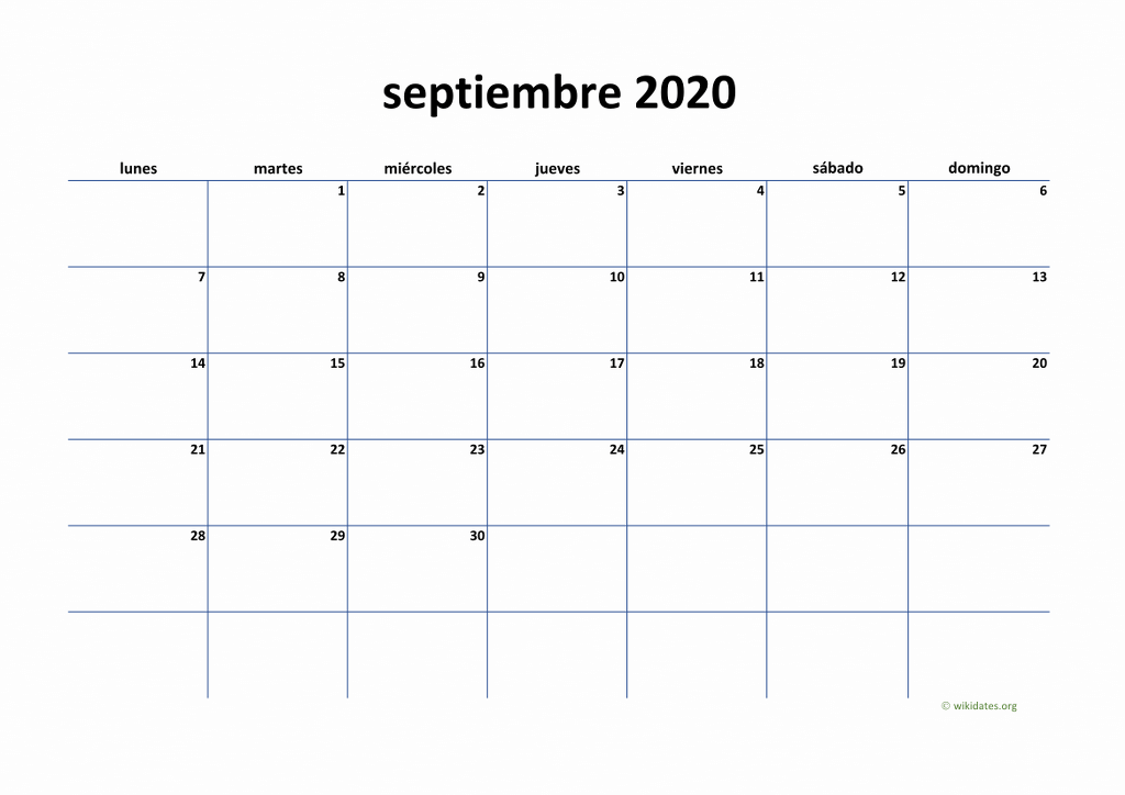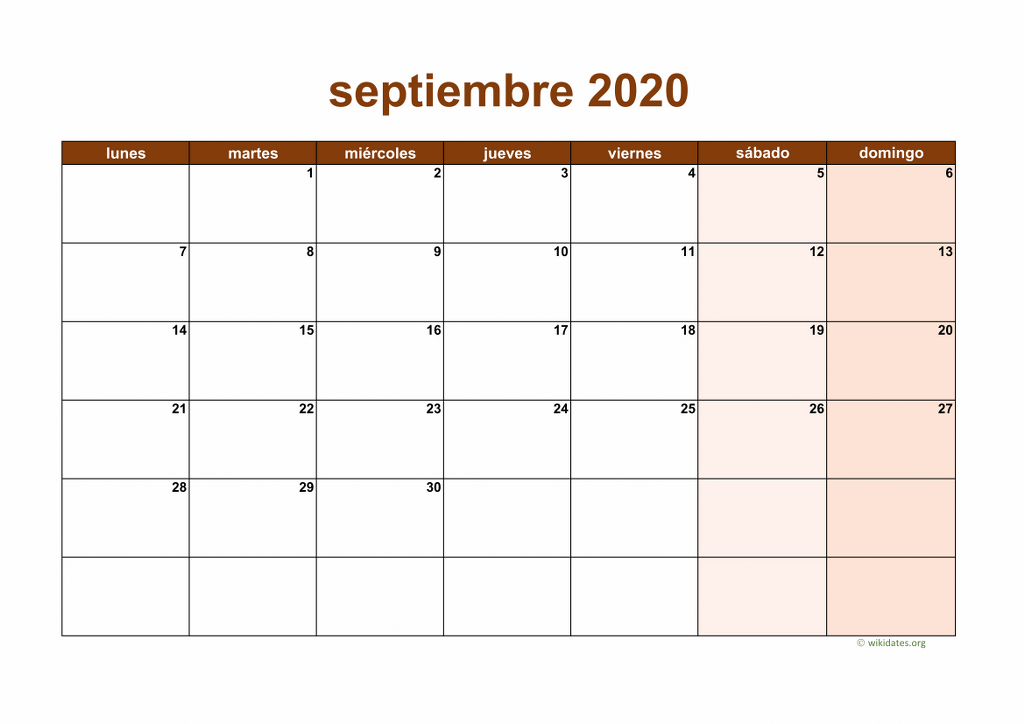 • Calendario Septiembre 2020 con los días festivos, gratis, para imprimir.