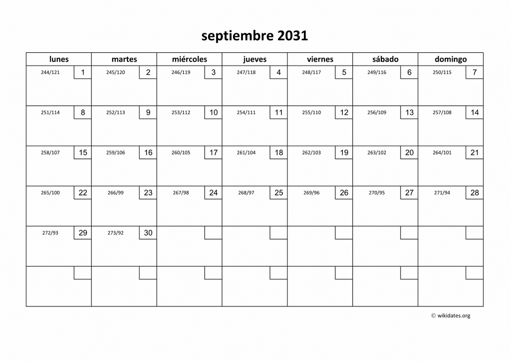 • Todo el calendario de septiembre de 2031 plantillas se pueden descargar, editar y gratuito para uso personal no comercial. Previsualizar y descargar todas las plantillas de calendario para imprimir en casa o en el trabajo.