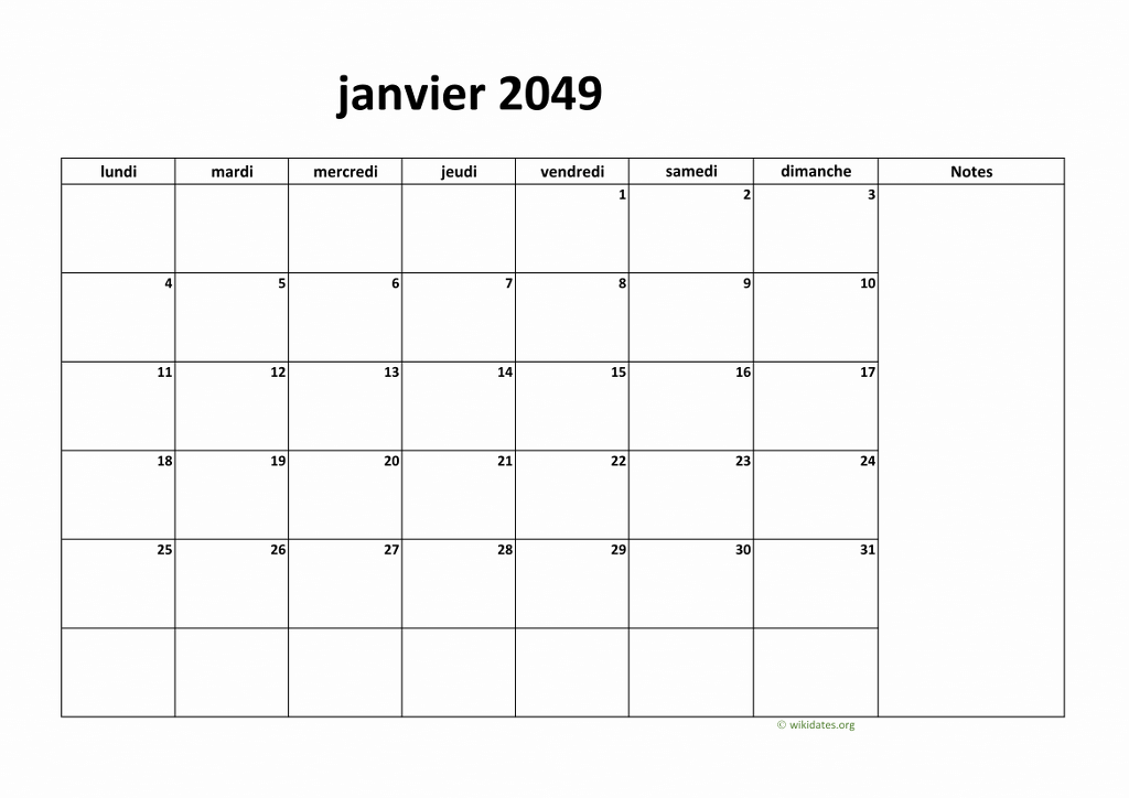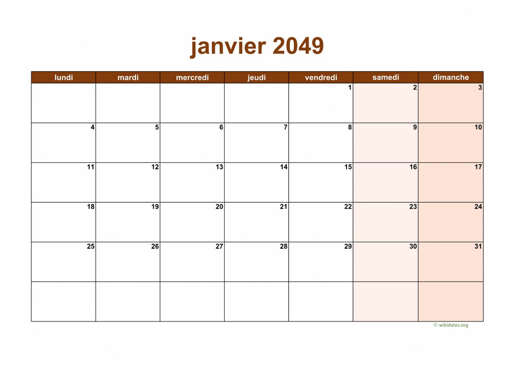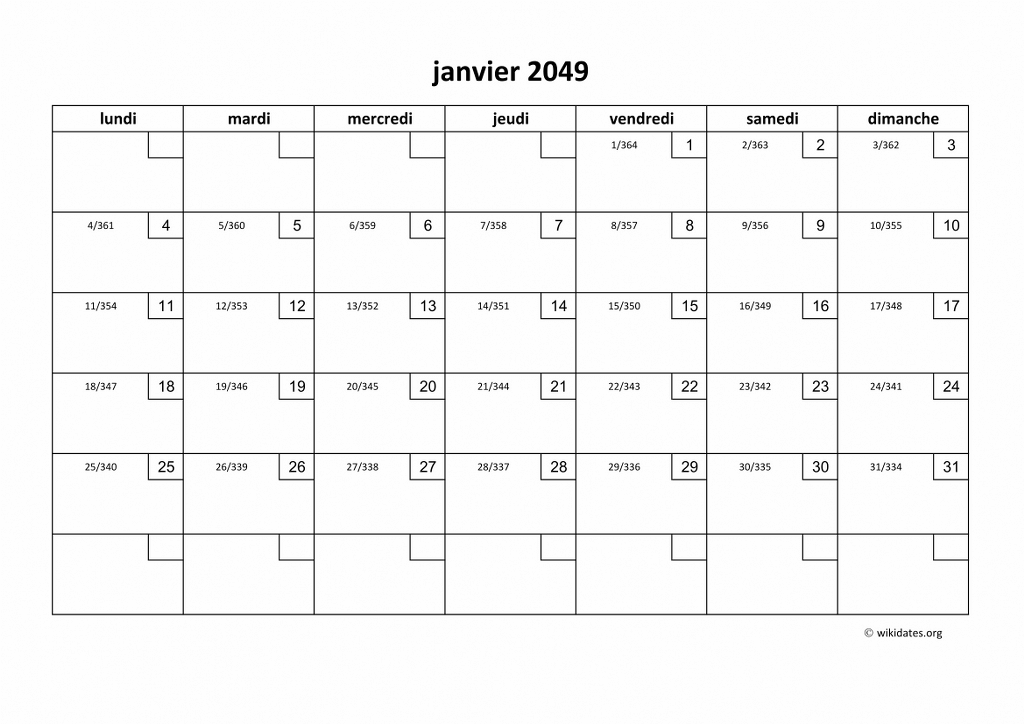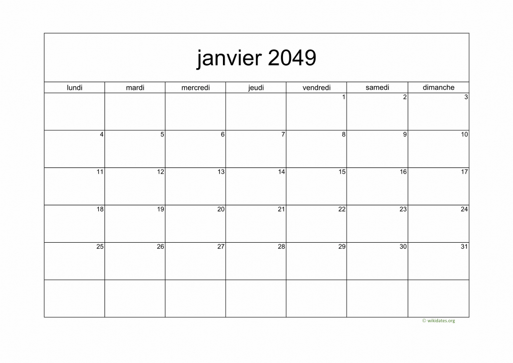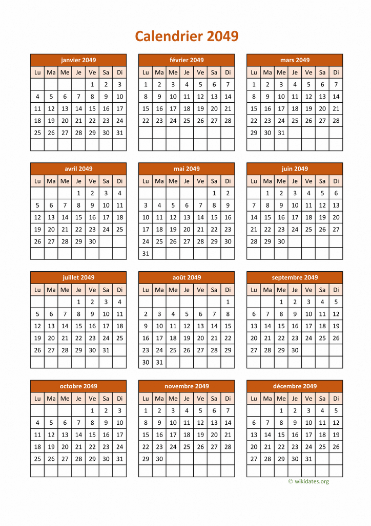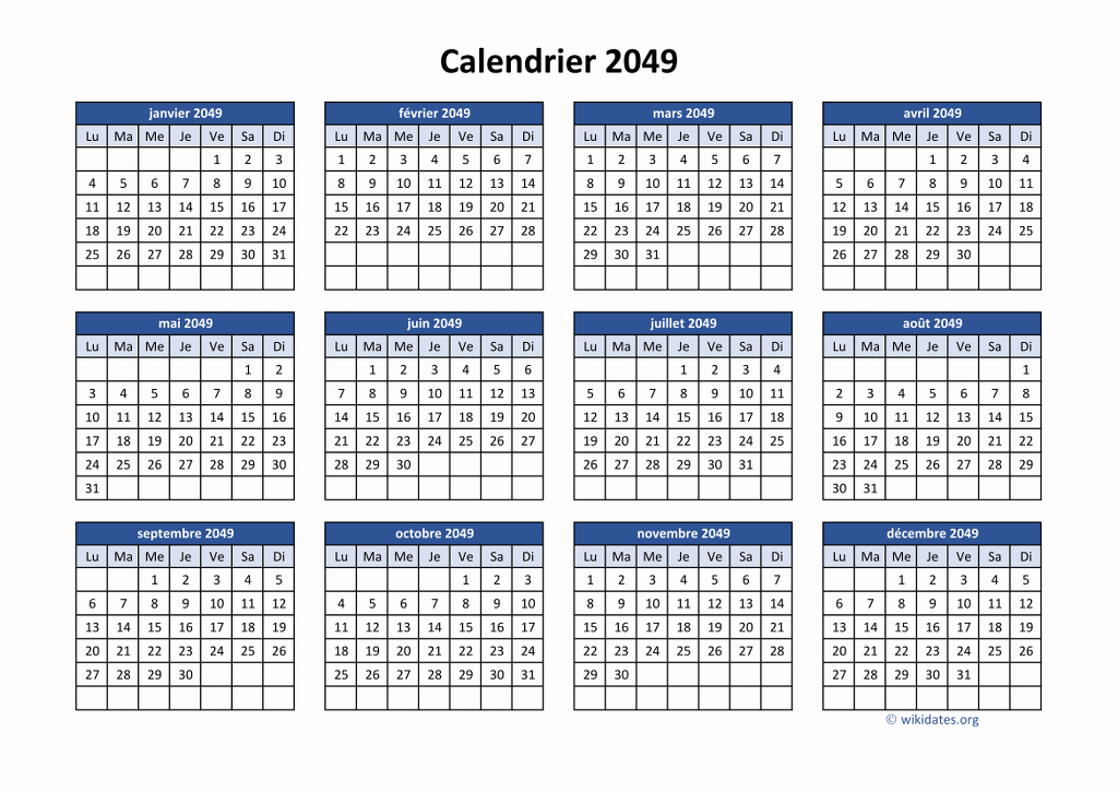 Calendrier 2049 à imprimer gratuit