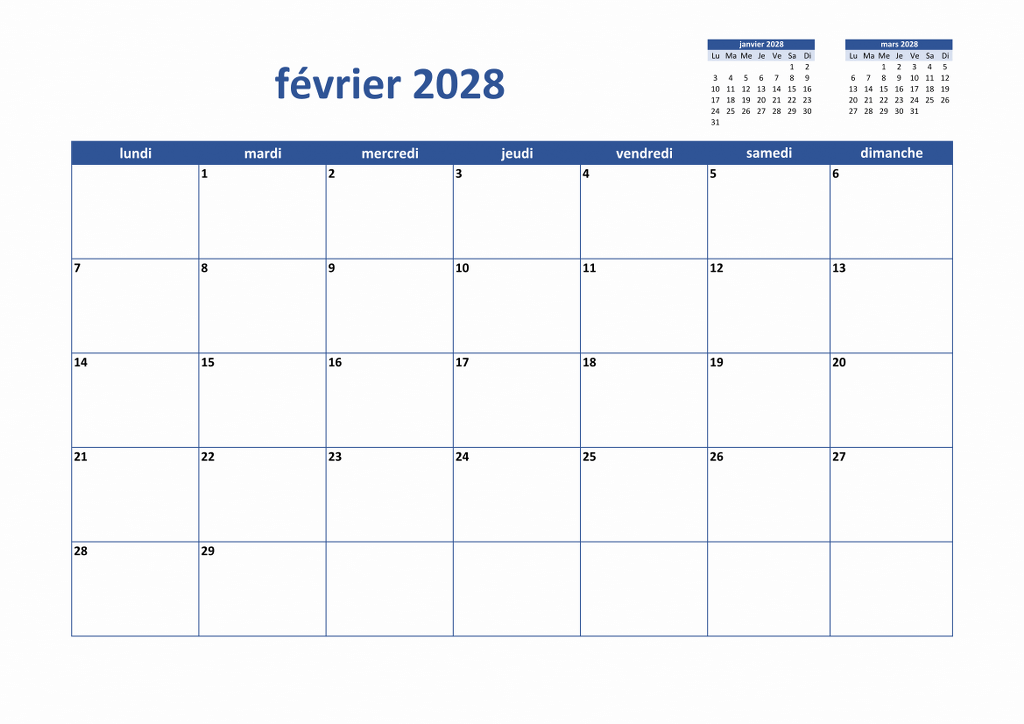 • Tout le calendrier février 2028 modèles sont téléchargeables, modifiable et gratuit pour une utilisation personnelle et non commerciale. Aperçu et télécharger tous les modèles de calendrier pour imprimer à la maison ou au travail.