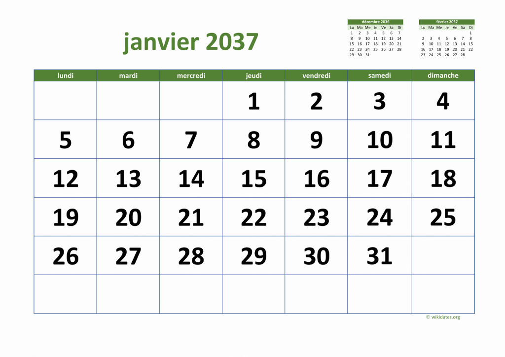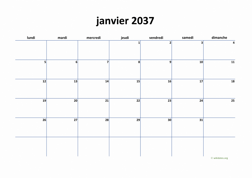 • Tout le calendrier janvier 2037 modèles sont téléchargeables, modifiable et gratuit pour une utilisation personnelle et non commerciale. Aperçu et télécharger tous les modèles de calendrier pour imprimer à la maison ou au travail.