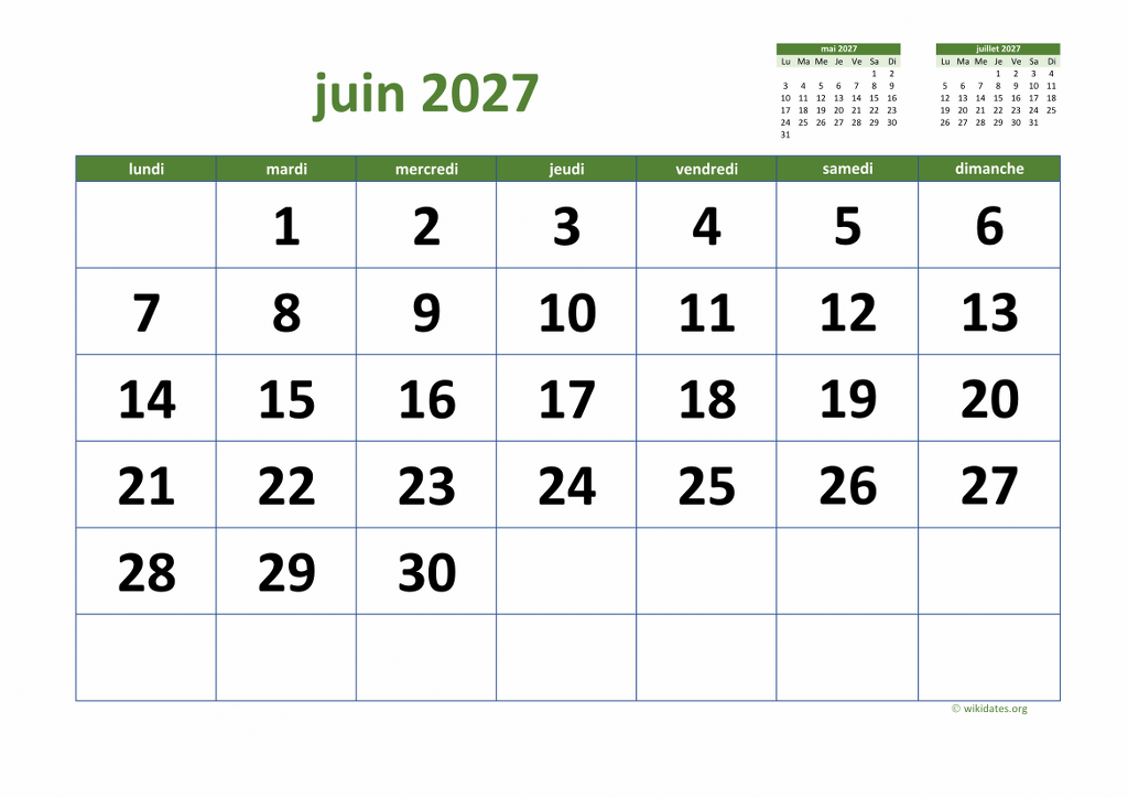 • Tout le calendrier juin 2027 modèles sont téléchargeables, modifiable et gratuit pour une utilisation personnelle et non commerciale. Aperçu et télécharger tous les modèles de calendrier pour imprimer à la maison ou au travail.