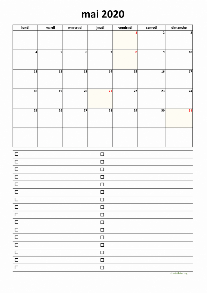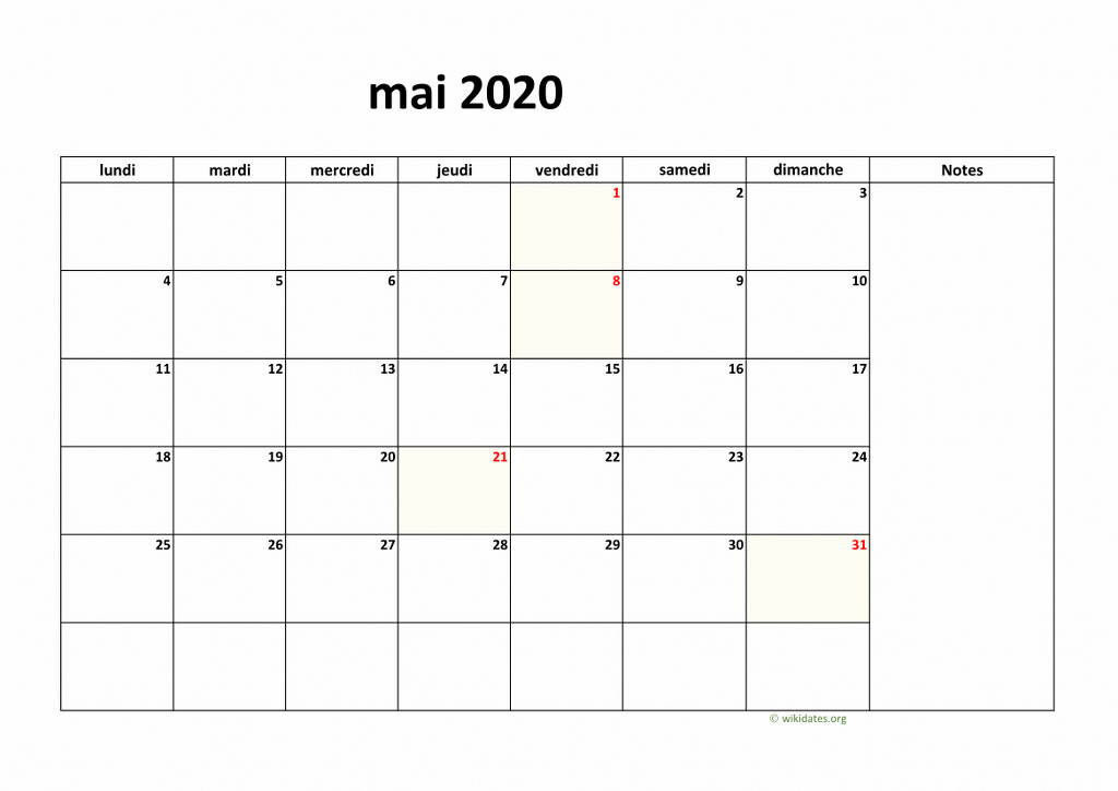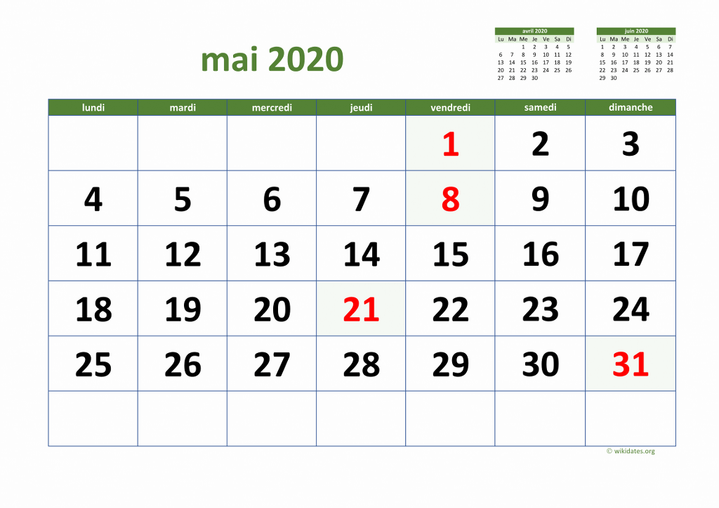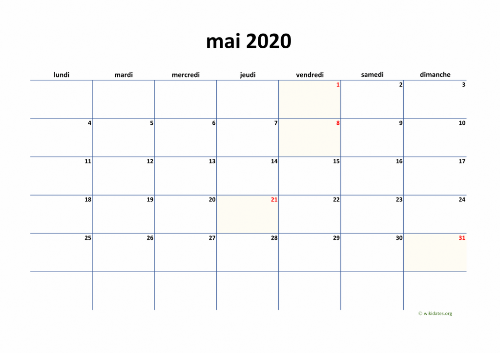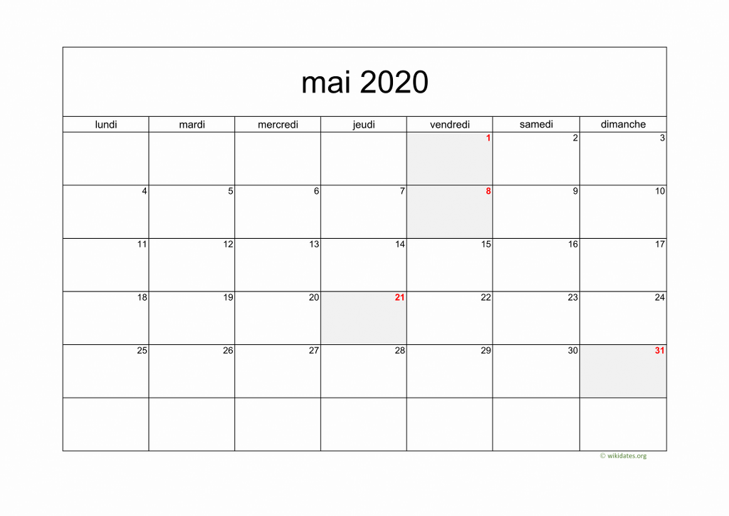 • Tout le calendrier mai 2020 modèles sont téléchargeables, modifiable et gratuit pour une utilisation personnelle et non commerciale. Aperçu et télécharger tous les modèles de calendrier pour imprimer à la maison ou au travail.