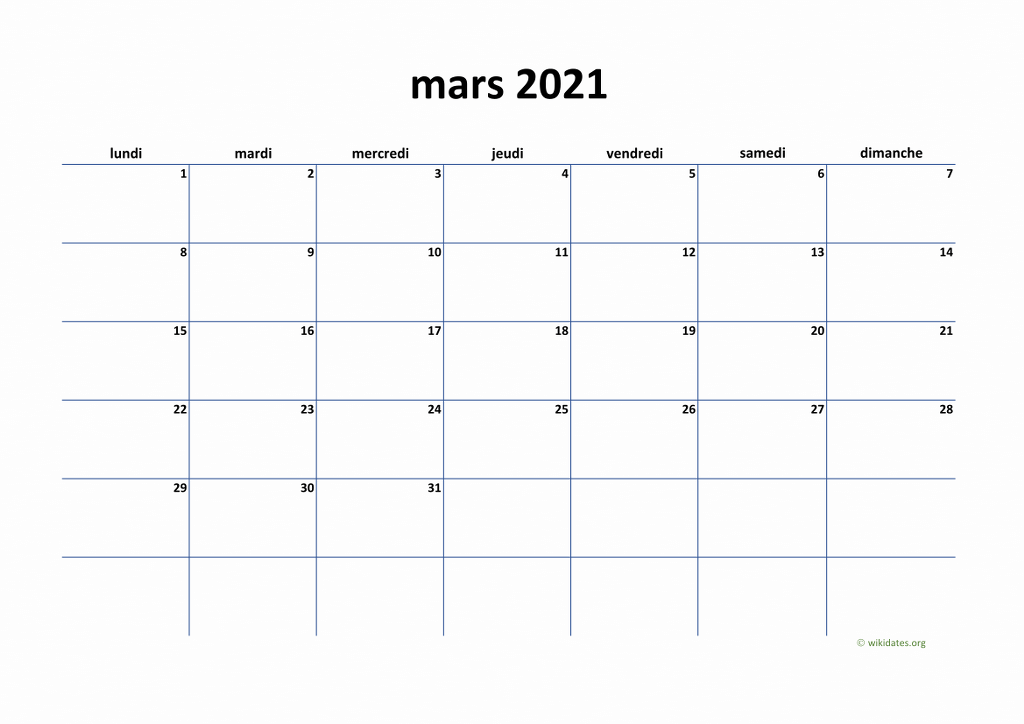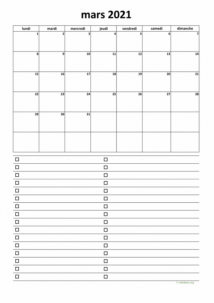 • Tout le calendrier mars 2021 modèles sont téléchargeables, modifiable et gratuit pour une utilisation personnelle et non commerciale. Aperçu et télécharger tous les modèles de calendrier pour imprimer à la maison ou au travail.