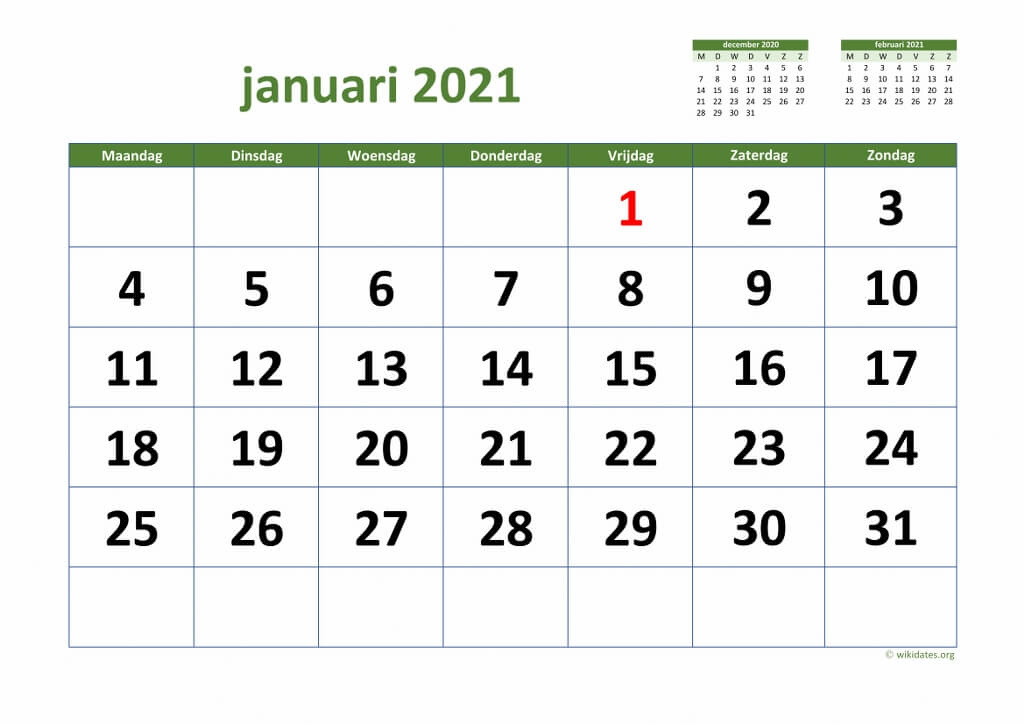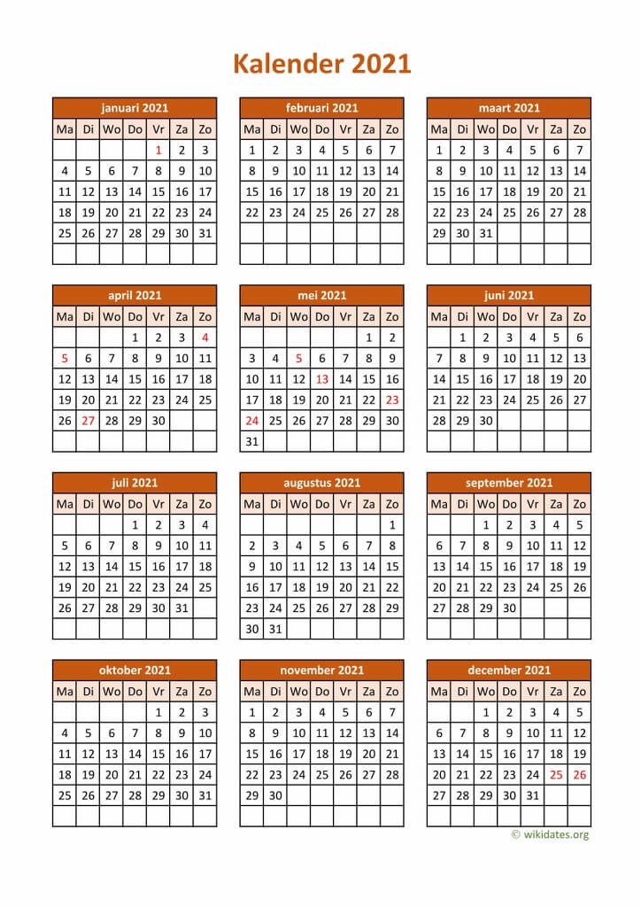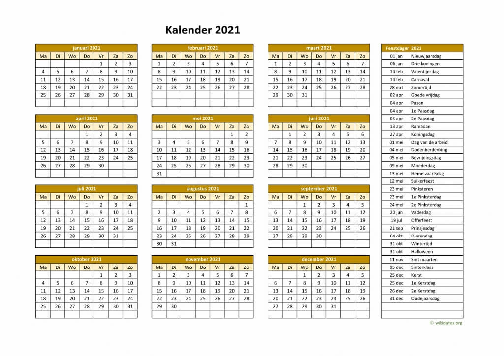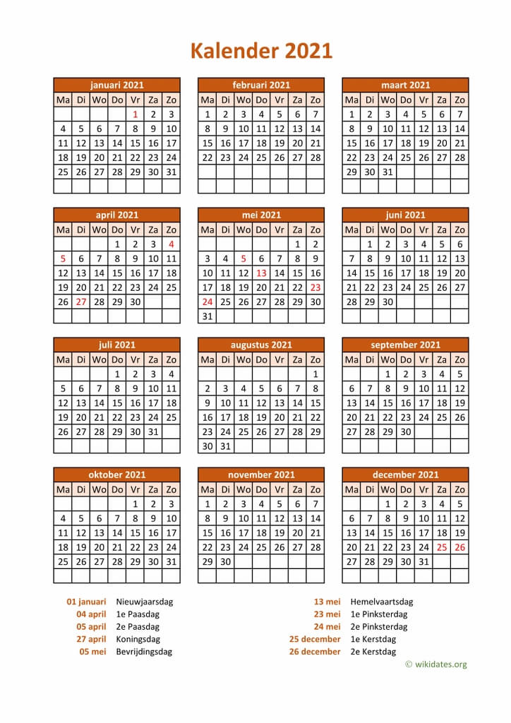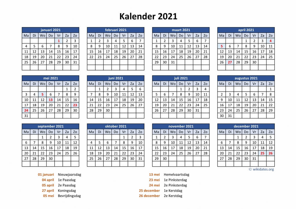 • Kalender 2021 Niederlande Jaarkalenders in Maandkalenders 2021 Niederlande mit Feiertagen. Auch für Druck und Download im MS Word (.docx), MS Excel (.xlsx), PDF und JPG-Format.