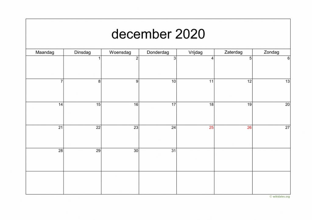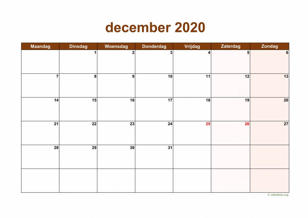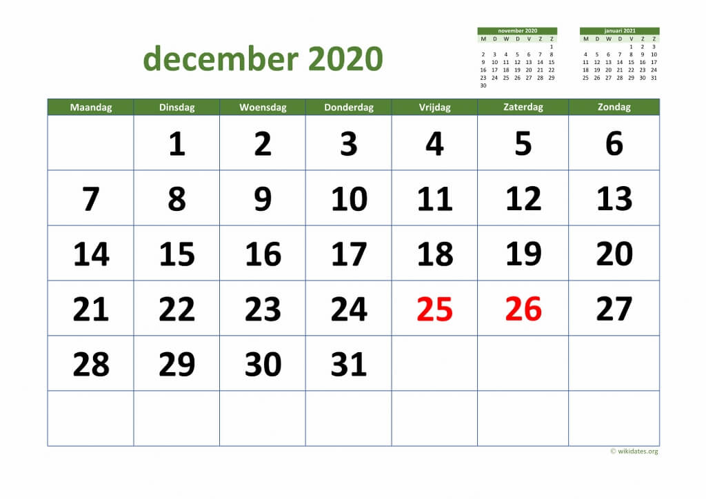 • Maandkalender December 2020 Niederlande Auch für Druck und Download im MS Word (.docx), MS Excel (.xlsx), PDF und JPG-Format.
