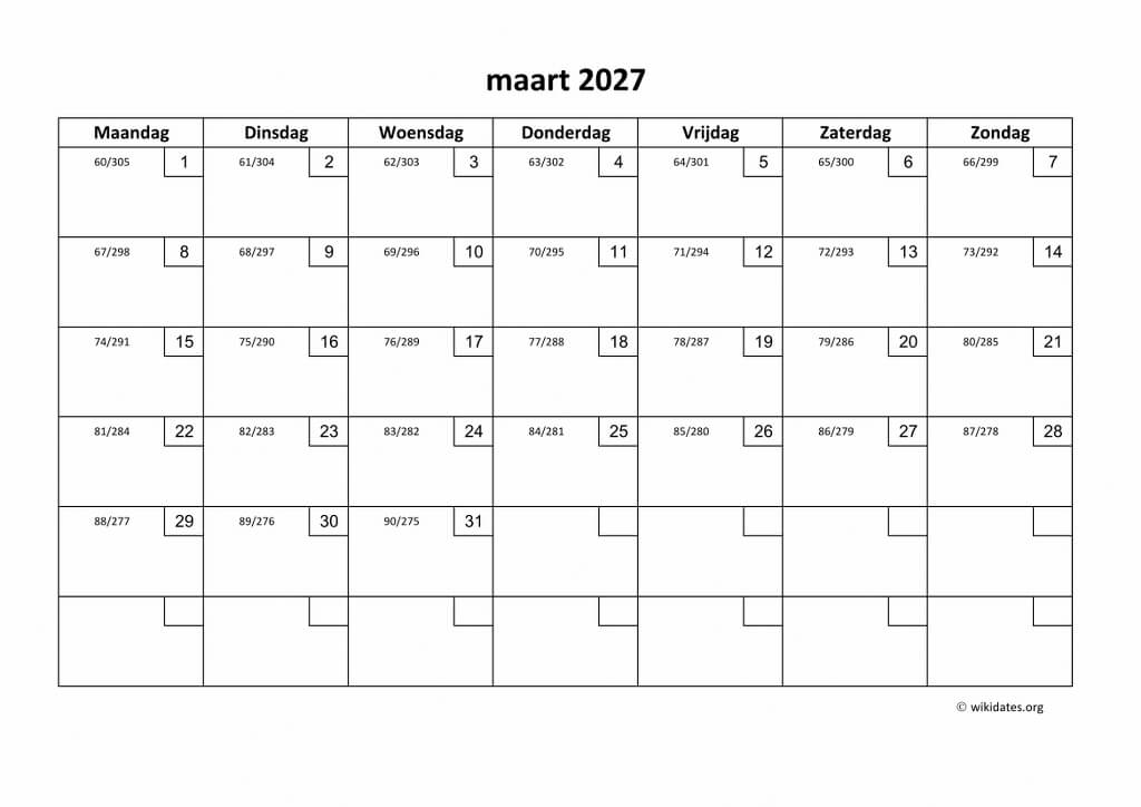 • Ga naar deze pagina om jaarkalender 2027 te downloaden (week begint op maandag).