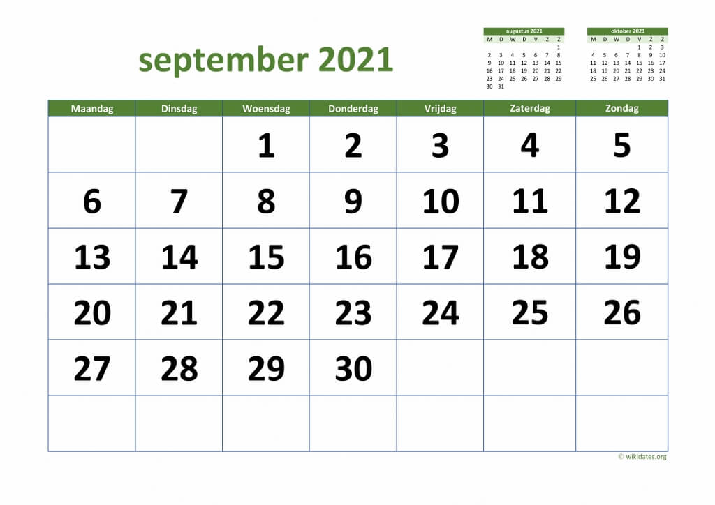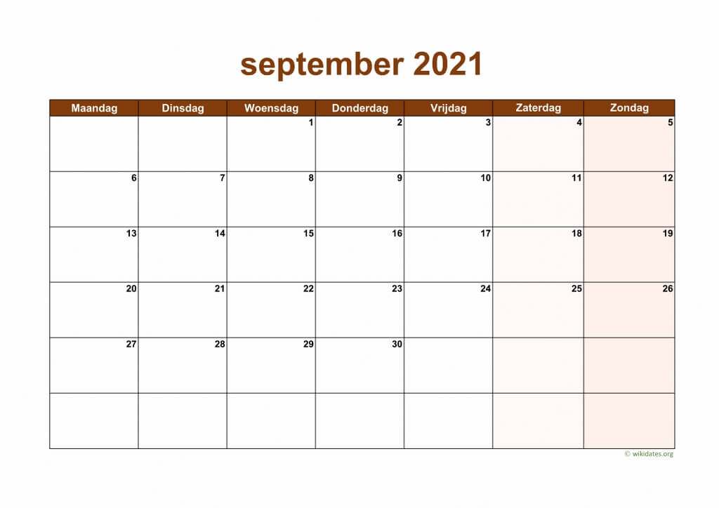 • Maandkalender September 2021 Niederlande Auch für Druck und Download im MS Word (.docx), MS Excel (.xlsx), PDF und JPG-Format.