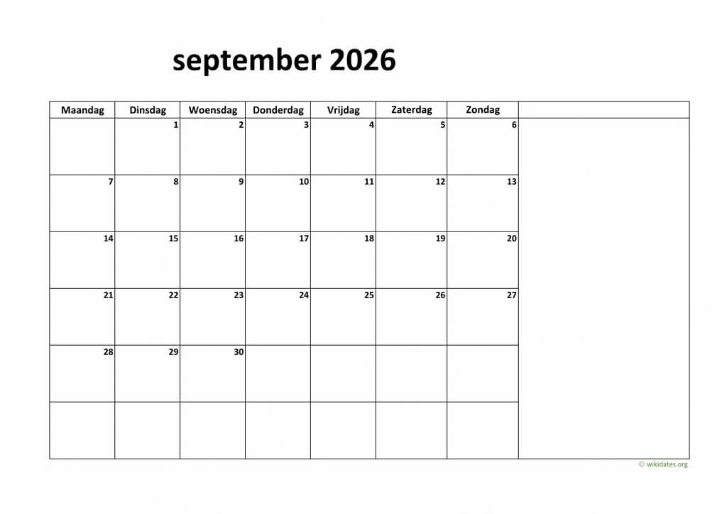 Kalender September 2026 Niederlande