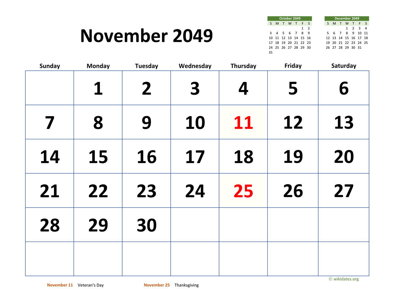 » Next month: December 2049 Calendar with Extra-large Dates