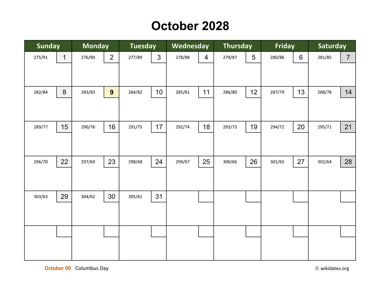 » Next month: November 2028 Calendar with Day Numbers