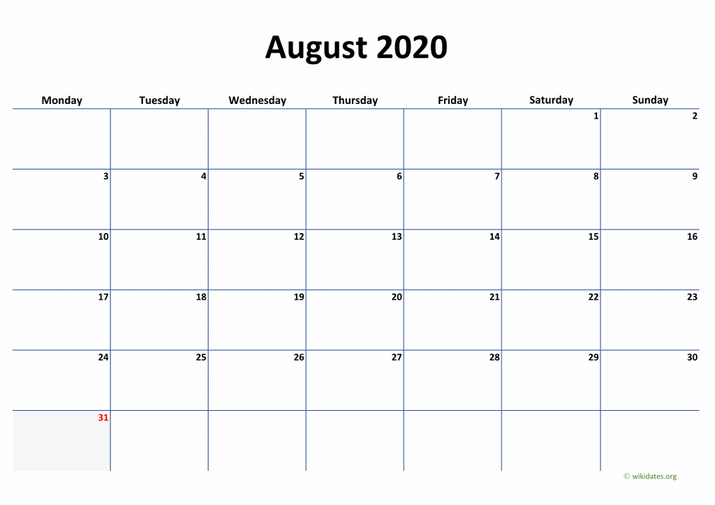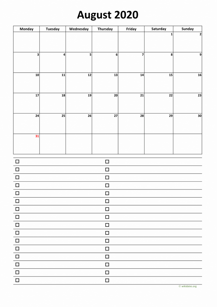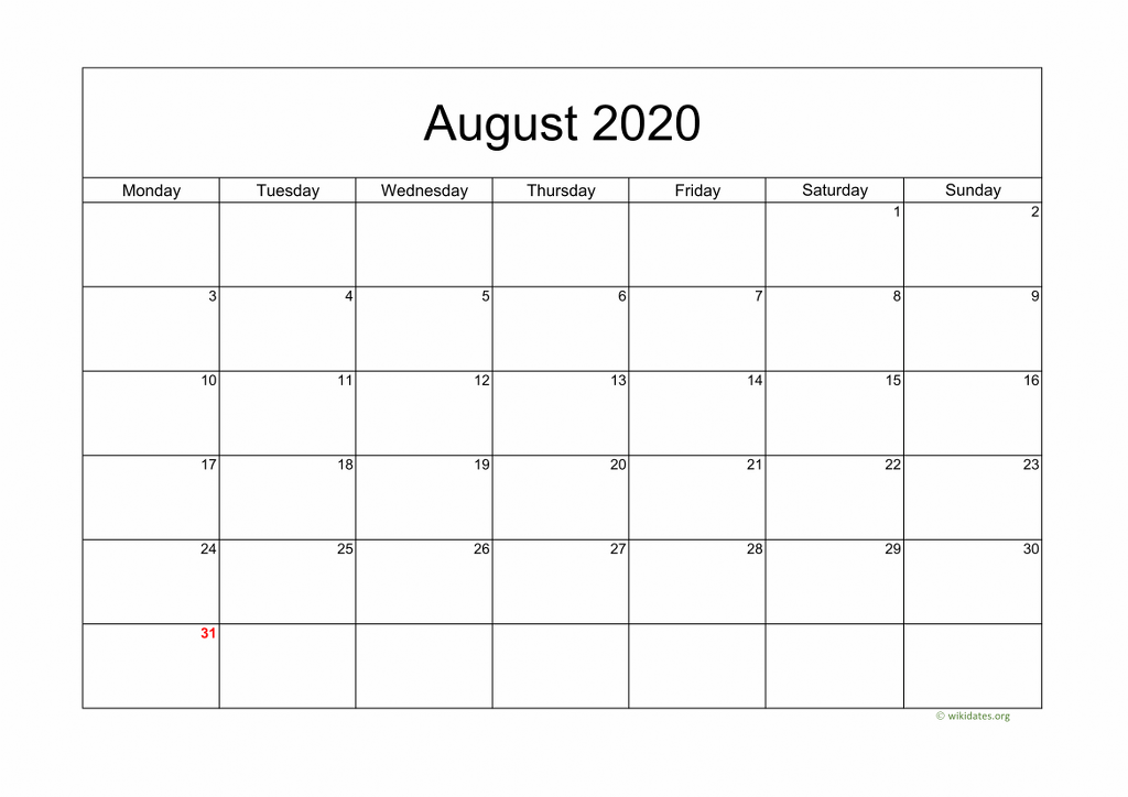 Calendar August 2020