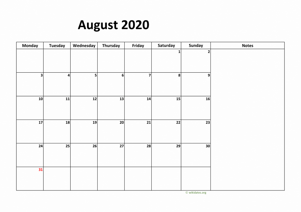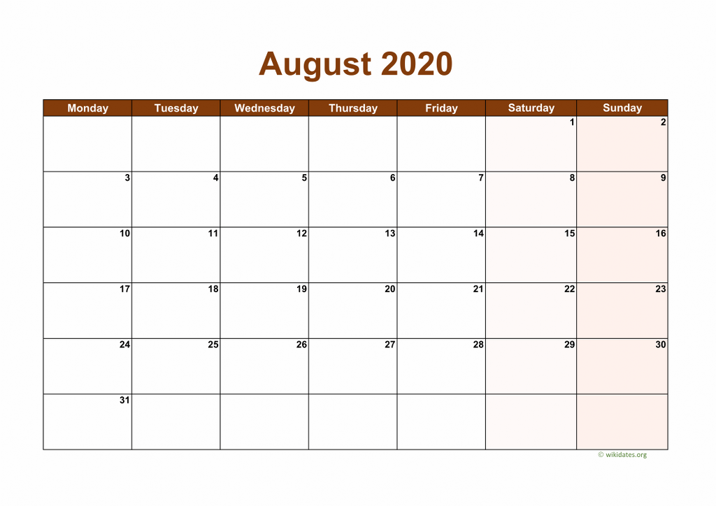 Download Calendar August 2020 Templates