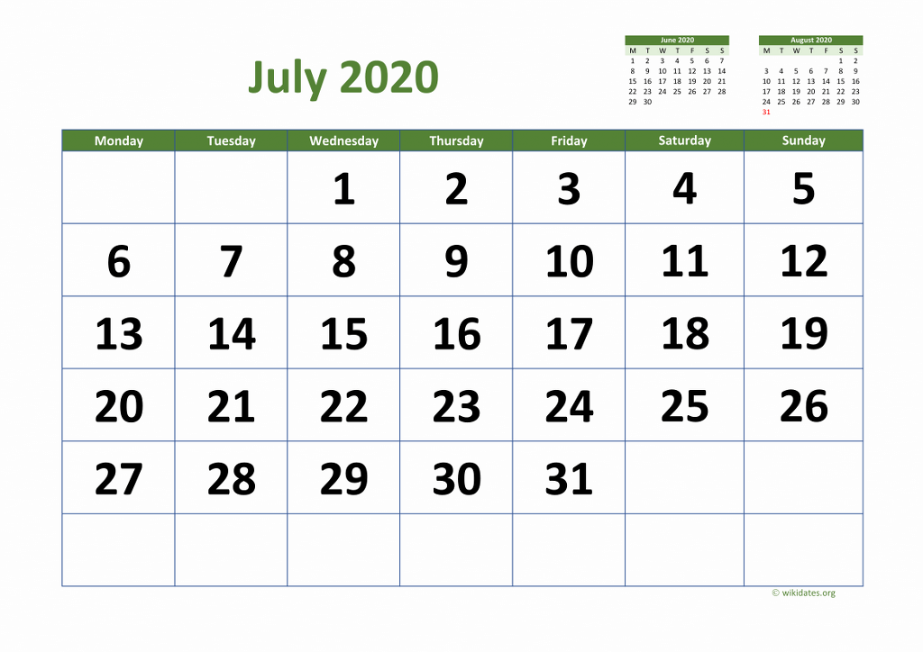 Calendar July 2020