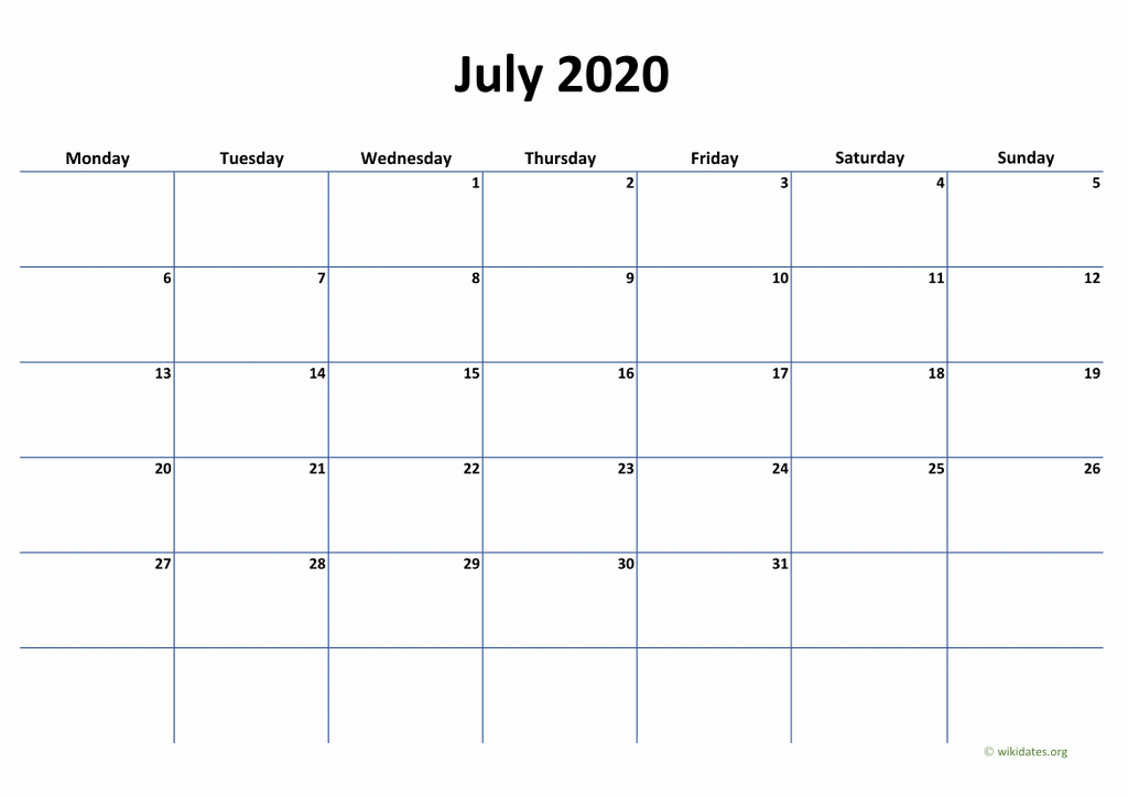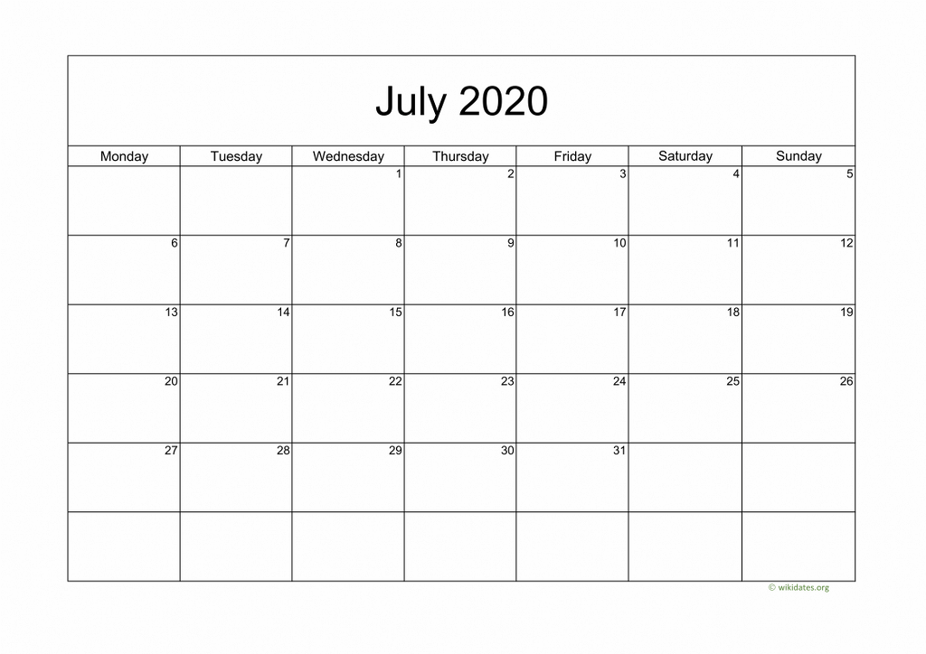 Printable calendar july 2020 templates for United Kingdom (UK). Print or download calendar july 2020 (week starts on Monday) as MS Word (.docx), PDF and PNG in A4 paper format.