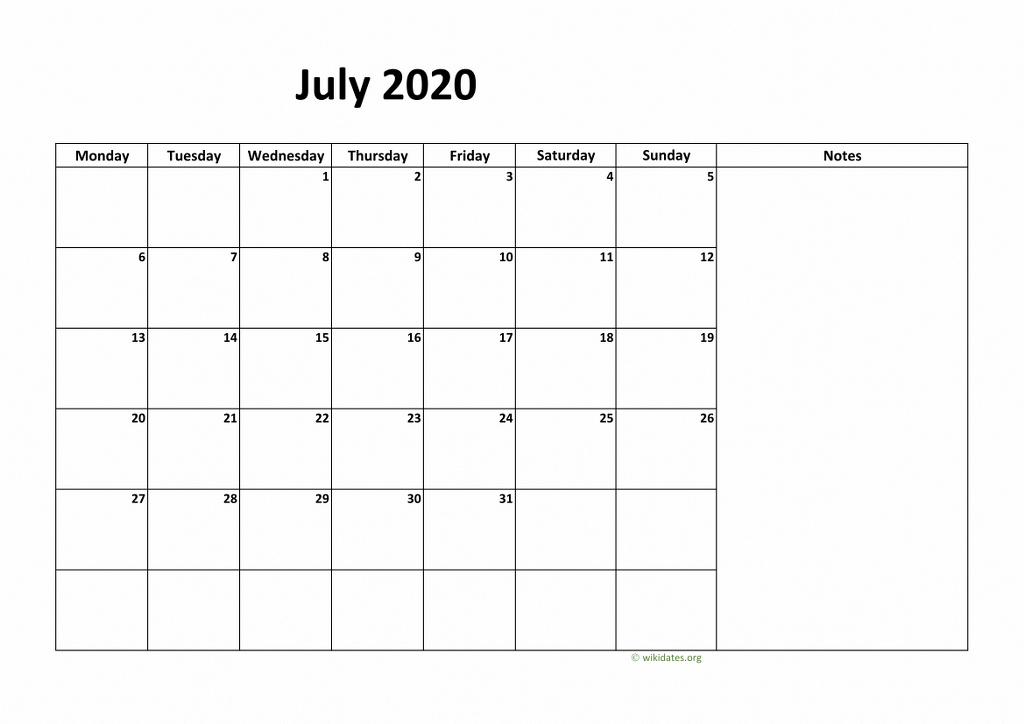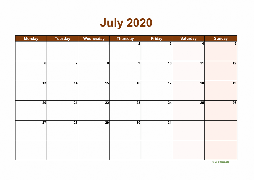 Download Calendar July 2020 Templates