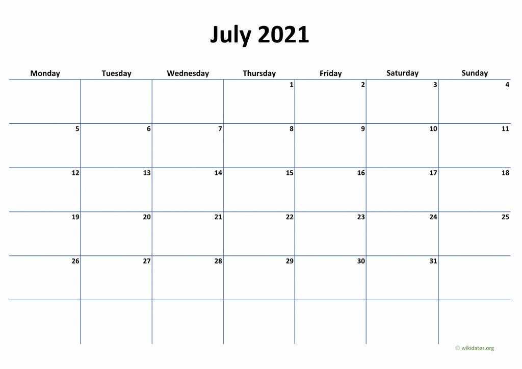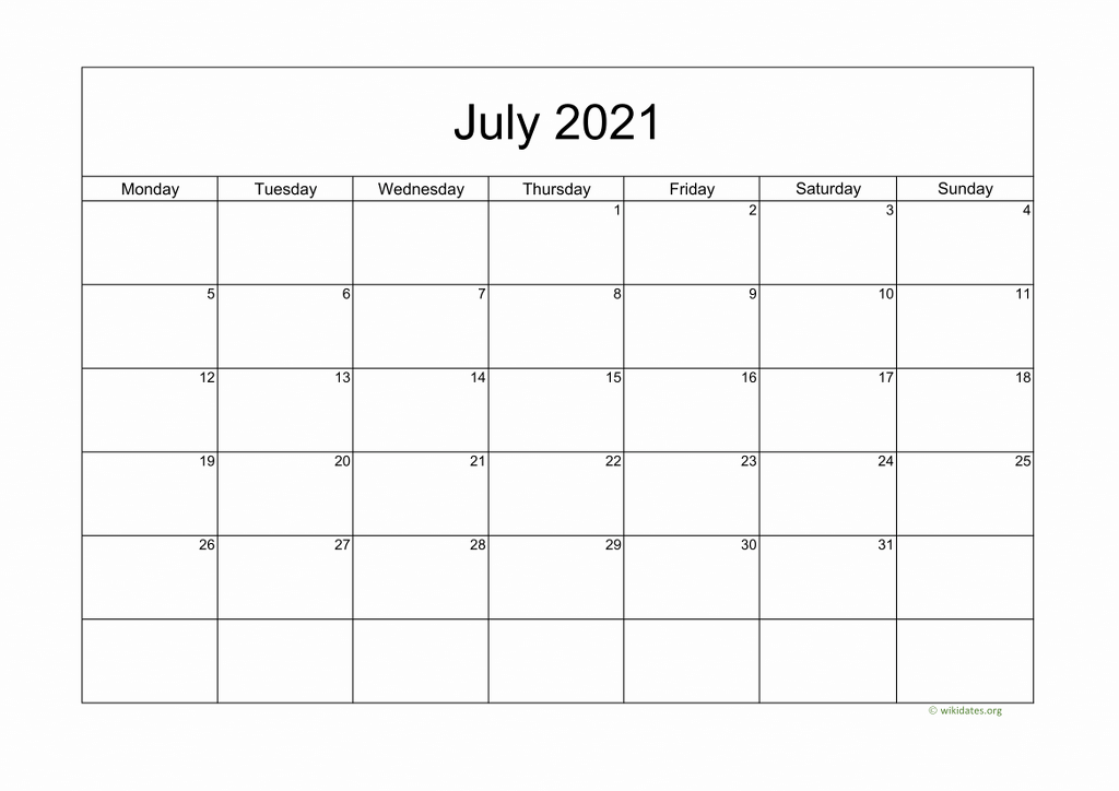 Printable calendar july 2021 templates for United Kingdom (UK). Print or download calendar july 2021 (week starts on Monday) as MS Word (.docx), PDF and PNG in A4 paper format.