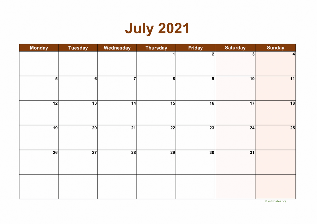 Download Calendar July 2021 Templates