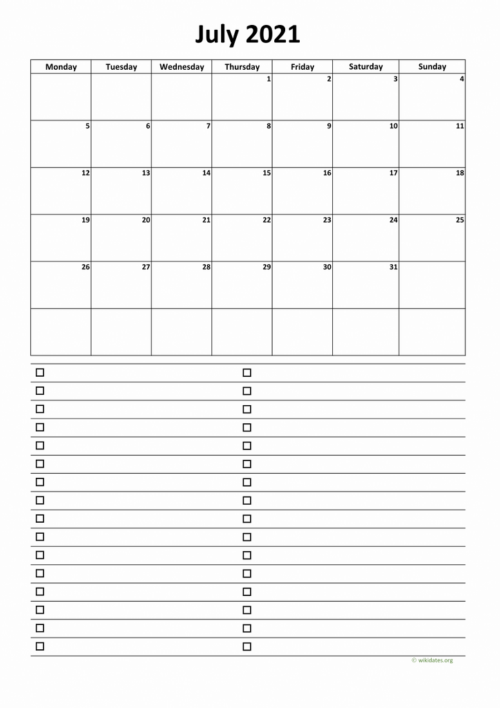 Calendar July 2021