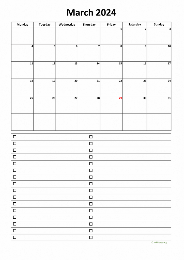 Calendar March 2024